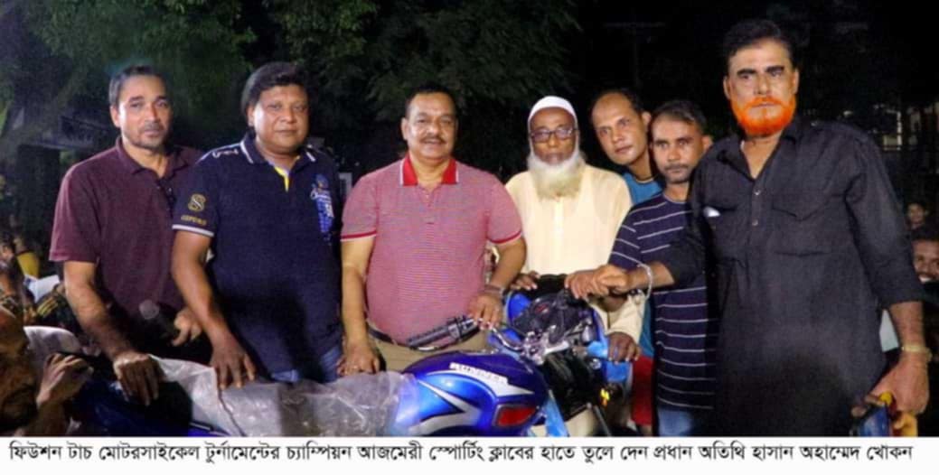 নারায়ণগঞ্জের বন্দরে সালামতউল্লাহ রিসার্চ ফাউন্ডেশনের চেয়ারম্যান হাসান আহাম্মেদ খোকনের অর্থায়নে আয়োজিত ফিউশন টাচ মোটর সাইকেল ফুটবল টুর্ণামেন্ট ২৯ সেপ্টেম্বর রোববার বিকেলে স্থানীয় ঘারমোড়া ঈদগাহ ময়দানে অত্যন্ত উৎসবমুখর পরিবেশে শেষ হয়েছে। রোববার টুর্নামেন্টের শ্বাসরুদ্ধকর ফাইনালে আজমীরি স্পোর্টিং ক্লাব প্রতিপক্ষ গোগনগর ক্রীড়া প্রশিক্ষণ শিবিরকে ২-১ গোলের ব্যবধানে পরাজিত করে শিরোপা জয় করে। খেলা শেষে প্রধান অতিথি হিসেবে উপস্থিত থেকে বিজয়ীদের হাতে মোটরসাইকেল তুলে দেন টুর্নামেন্টের প্রধান পৃষ্ঠপোষক হাসান আহাম্মেদ খোকন। সাবেক ব্যাংকার বীরমুক্তিযোদ্ধা নূরুল ইসলাম মোল্লার সভাপতিত্বে পুরস্কার বিতরণী অনুষ্ঠানে উদ্বোধক হিসেবে ছিলেন কলাগাছিয়া ইউনিয়ন পরিষদের চেয়ারম্যান হাজী দেলোয়ার হোসেন প্রধান। লিয়াকত আলীর সঞ্চালনায় এ সময় উপস্থিত ছিলেন জাতীয় পার্টির নেতা নুরুন্নবী ওসমানী,বিএনপি নেতা এড. আব্দুল মতিন মোঃ সেলিমসহ অন্যান্য ব্যক্তিবর্গ। প্রধান অতিথির বক্তব্যে হাসান আহাম্মেদ খোকন বলেন,খেলাধূলার মাধ্যমে সমাজটাকে ভাল রাখতে হবে। এই সমাজ আপনার আমার সবার। এটা ভাল রাখার দায়িত্ব আপনার আমার সবার। এবার ছোট্র পরিসরে হয়েছে আগামীতে বড় পরিসরে করার ইচ্ছে আছে। একটি বিষয় না বললে নয়,এই টুর্নামেন্টকে কেন্দ্র করে একটি দল বিদেশী খেলোয়ার নেয়ার জন্য আমার কাছে ডোনেশন চেয়েছিল কিন্তু আমি তাদেরকে না করে দিয়েছি কারণ,আমি আয়োজক আমি যদি একটা দলের পক্ষাবলম্বন করি তাহলে এটা বেমানান দেখায়। তাই দুটি দলের জন্য আমি বিদেশী খেলোয়ারের বাজেট দিয়েছি যাতে কোন প্রকার স্বজনপ্রীতির কথা না হয়। এটাই হওয়া উচিত। প্রত্যেকটা ক্ষেত্রে আমরা যদি এইরকম হিসেব করে কাজ করি তাহলে সমাজে কোন অসঙ্গতি দেখা দেয়না।