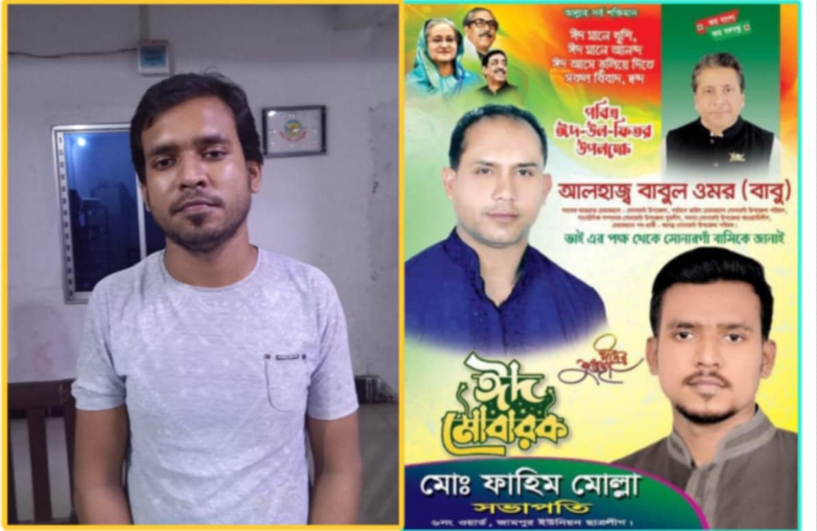 নারায়ণগঞ্জের সোনারগাঁ উপজেলার জামপুর ইউনিয়নের ৬ নং ওয়ার্ড সভাপতি মোঃ ফাহিম মোল্লা কে আটক করেছে সোনারগাঁ থানা পুলিশ।