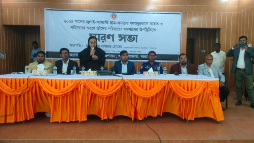 মো. জিয়াউর রহমান: আড়াইহাজারে জুলাই-আগস্টে ছাত্র-জনতার গণঅভ্যুত্থানে শহীদ ও আহতদের স্মরণে তাদের পরিবারের সদস্যদের উপস্থিতিতে উপজেলা প্রশাসনের উদ্যোগে একটি স্মরণসভার আয়োজন করা হয়েছে। বুধবার বিকালে উপজেলা পরিষদ অডিটরিয়ামে এর সভা অনুষ্ঠিত হয়।
