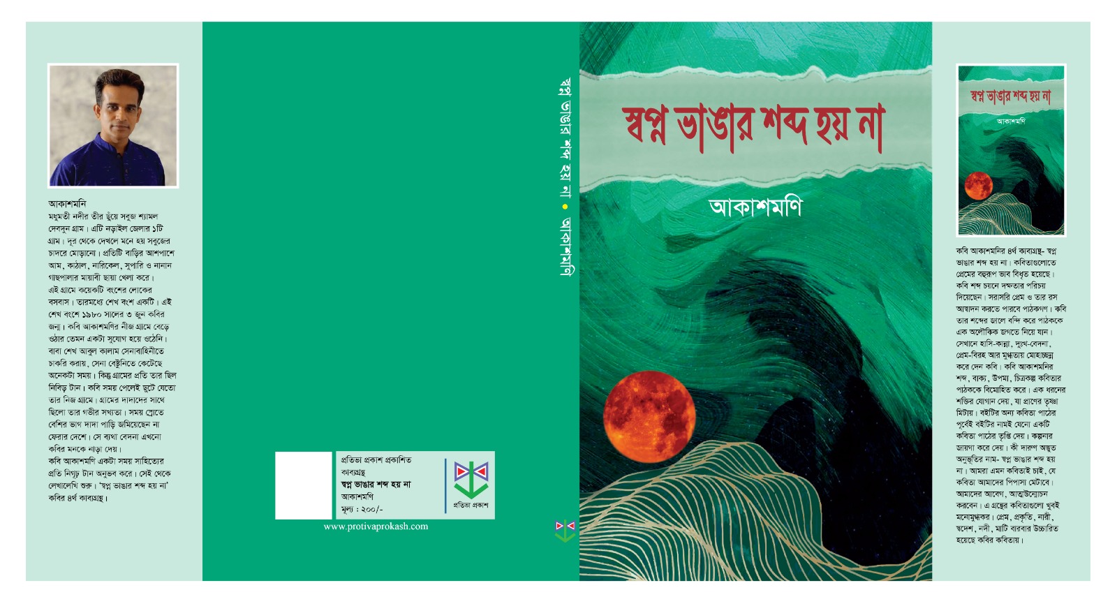 অমর একুশে বইমেলা ২০২৫ প্রকাশিত হয়েছে, মনের কবি প্রেমের কবি আকাশমণির কাব্যগ্রন্থ “স্বপ্ন ভাঙার শব্দ হয় না”। বইটি প্রকাশিত হয়েছে প্রতিভা প্রকাশ থেকে। বইটির প্রচ্ছদ করেছেন শাহাদাত শিবলী। মুদ্রিত মূল্য রাখা হয়েছে ২০০ টাকা। বইটি পাওয়া যাবে প্রকাশনীর শোরুমে, রকমারি এবং বইমেলার স্টলে। স্টল নং ৩২৭,৩২৮,৩২৯