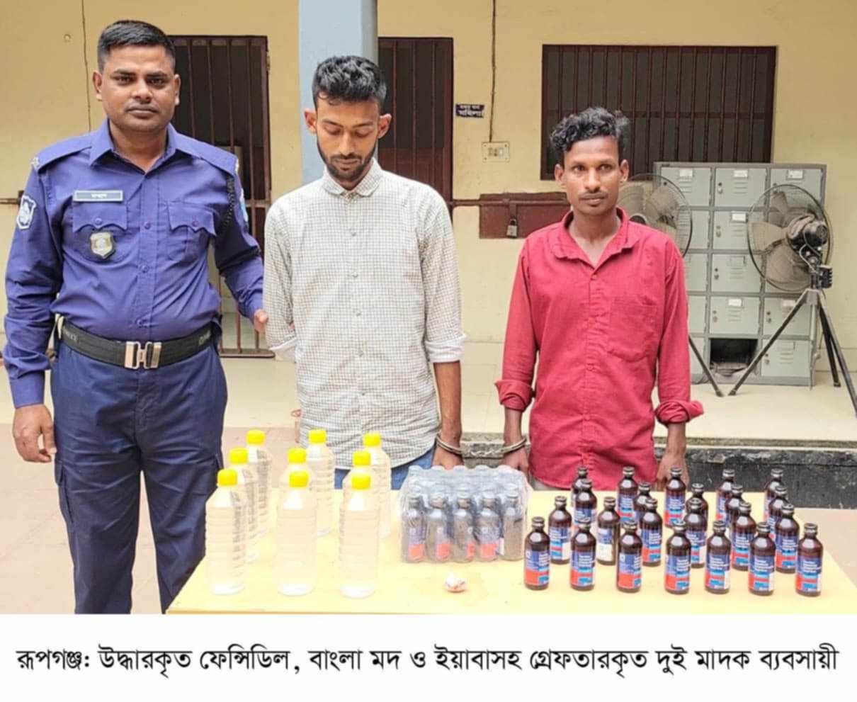 রূপগঞ্জে ফেন্সিডিল ও ইয়াবাসহ দুই মাদক ব্যবসায়ী গ্রেফতার